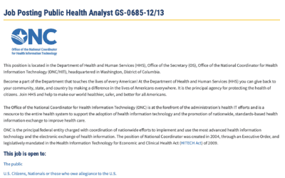 The Public Health Analyst, GS-0685-12/13 (Schedule A COVID 19) announcement is now posted on ONC Careers webpage for you to share with eligible candidates.  The Public Notice Link provided below will take applicants directly to the job posting and provide specific...