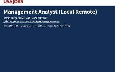 Summary This position is located in the Department of Health and Human Services, Office of the National Coordinator for Health Information Technology, headquartered in Washington, District of Columbia. Remote - Within the Local Commuting Area (Local Remote): This...