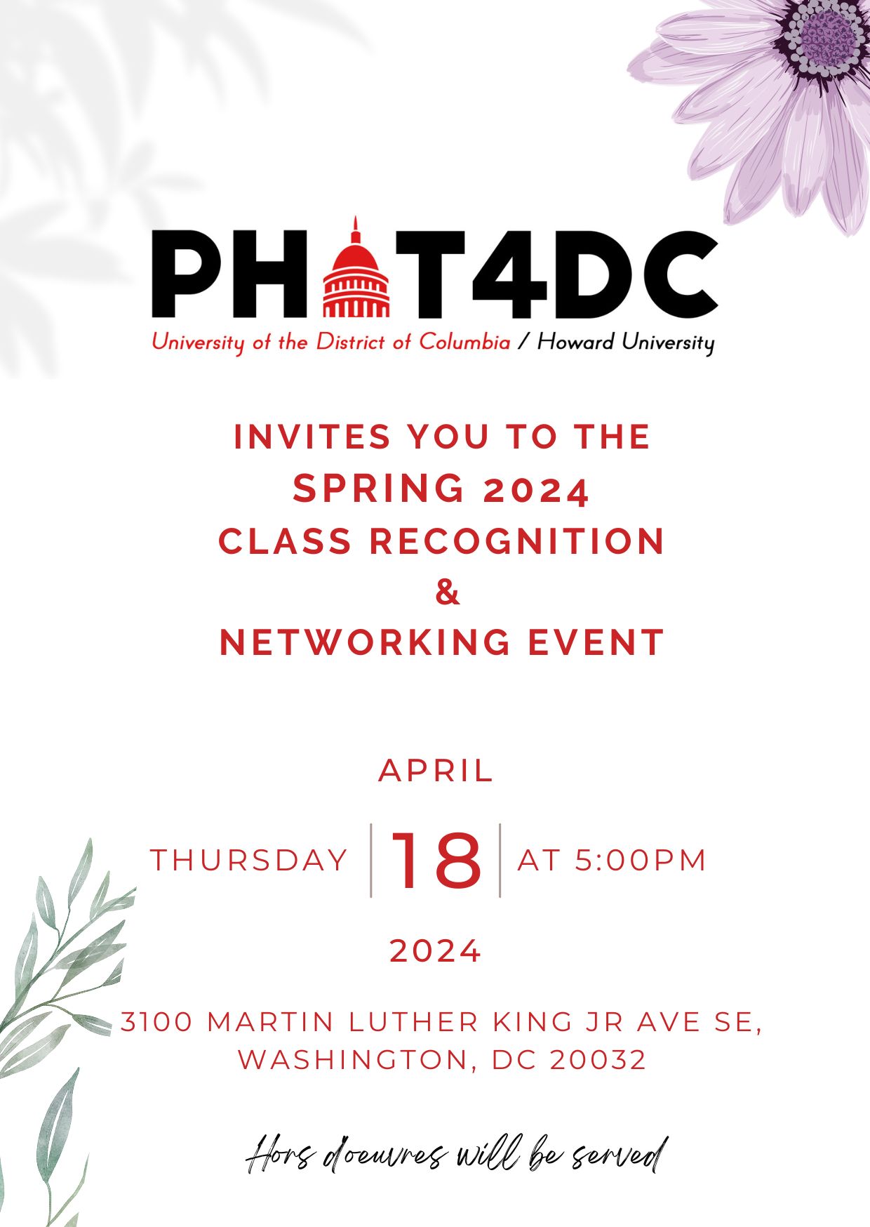 PHIT4DC is gearing up for its Spring 2024 Class Recognition & Networking Event, an exciting opportunity for public health professionals in the District of Columbia to connect and celebrate achievements. This event, scheduled for April 18, 2024, from 5:00 PM to 6:30 PM, promises to be a meaningful gathering for attendees, featuring hors d’oeuvres in a friendly and professional setting.