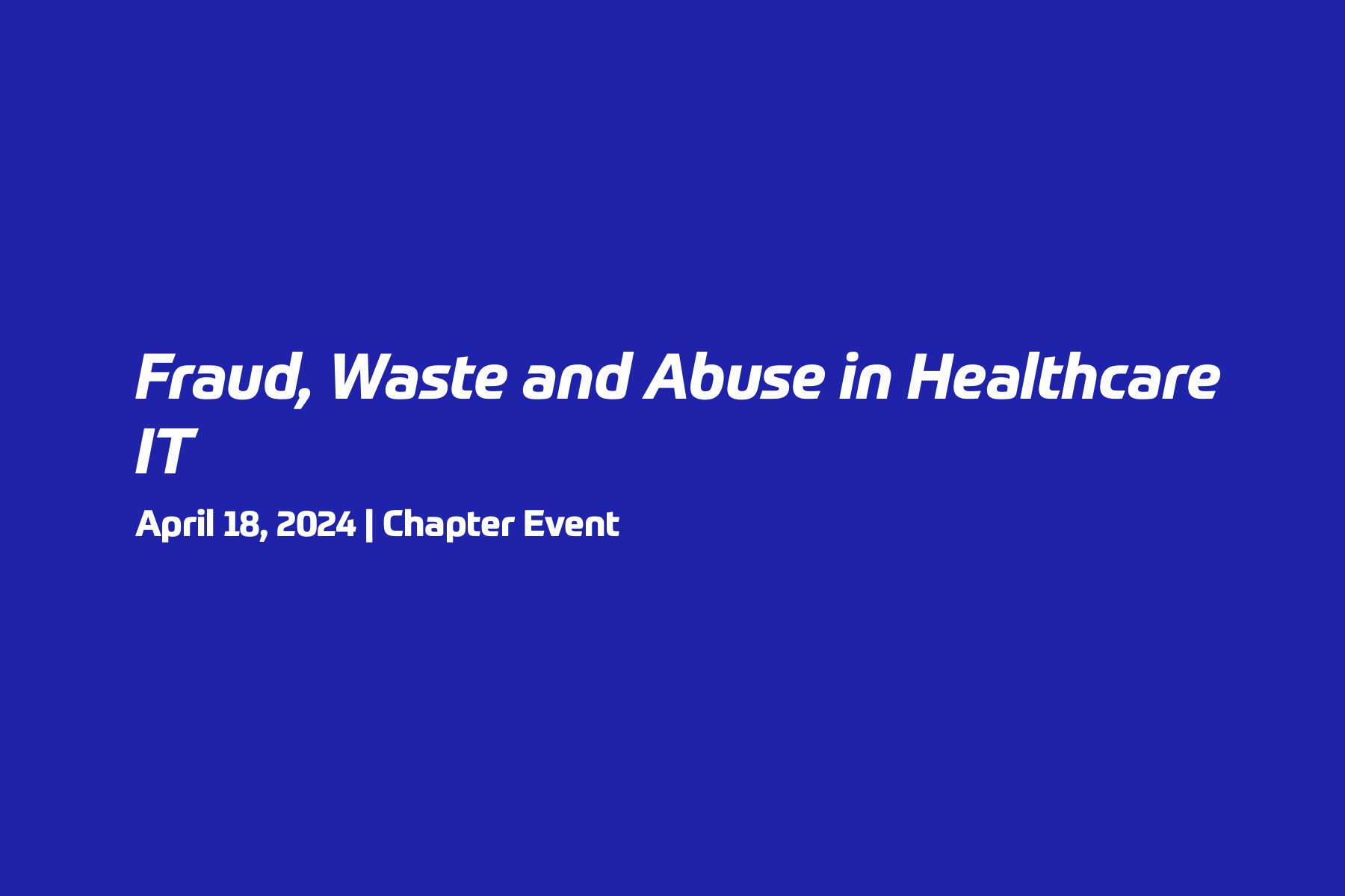 • NCA HIMSS – Fraud, Waste and Abuse in Healthcare IT