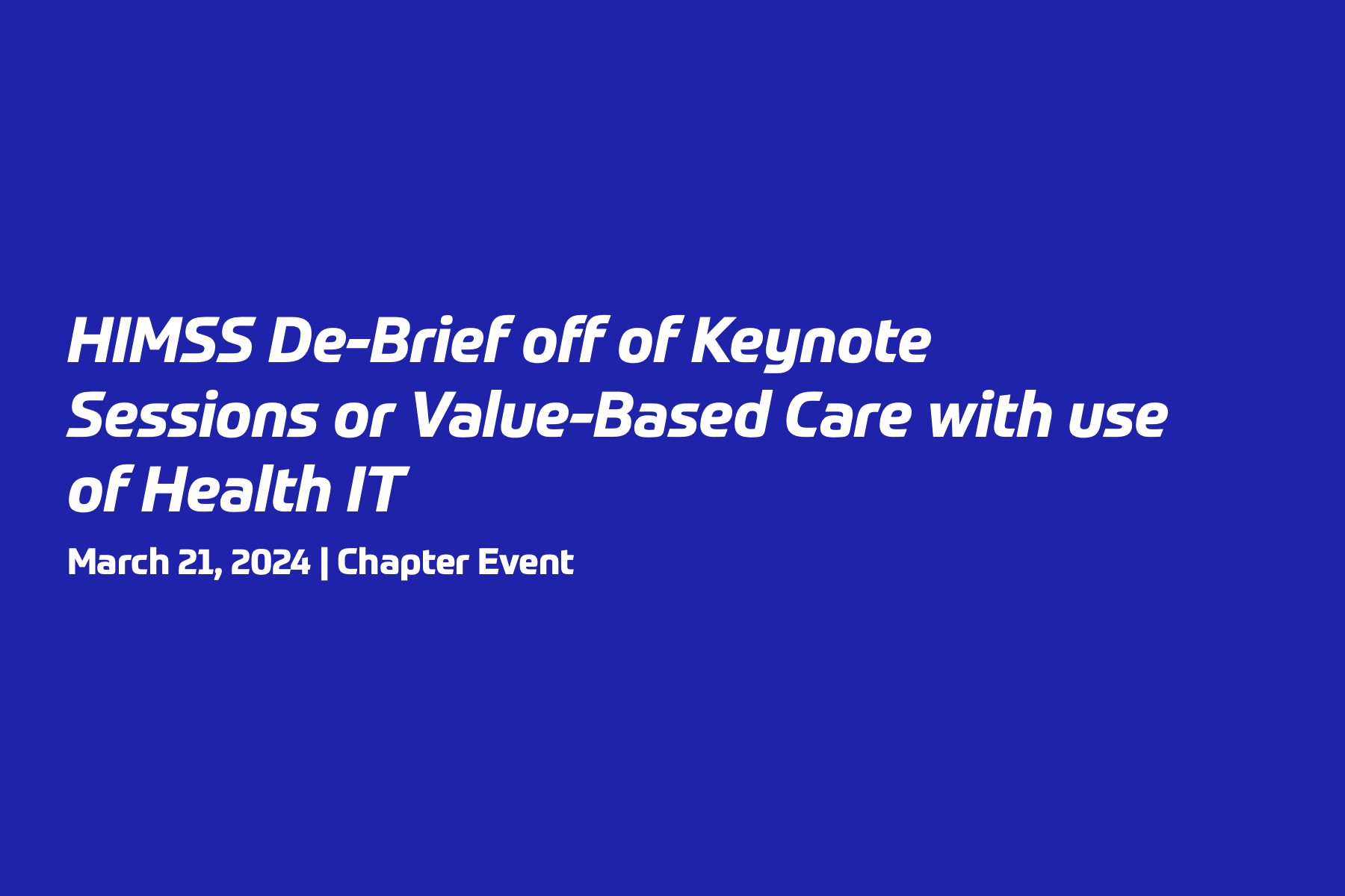 • NCA HIMSS – HIMSS De-Brief off of Keynote Sessions or Value-Based Care with use of Health IT | HIMSS