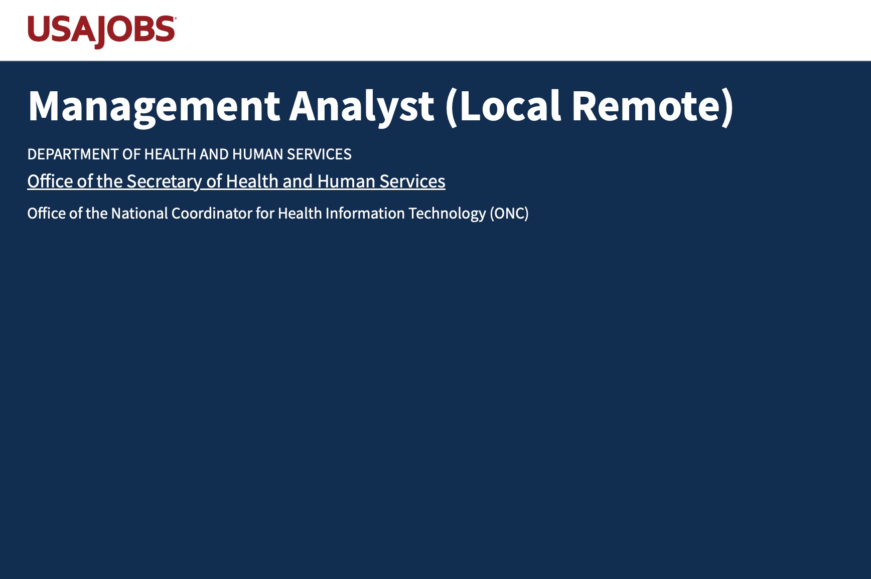 As a Management Analyst, you will use your knowledge of and experience with the Office of the National Coordinator for Health Information Technology (ONC) to optimize business results and customer experience by: